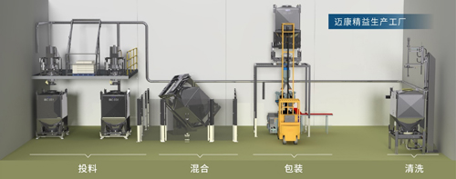 将投料、配料、混合、包装、清洗拆分为多个模块,这些步骤可以同时进行。生产效率提升、产能提高的同时灵活性极强,帮助客户快速响应市场需求的变化并真正实现精益生产。
